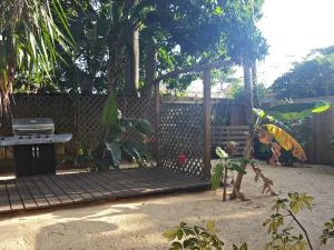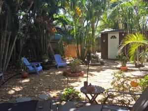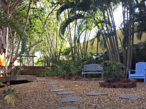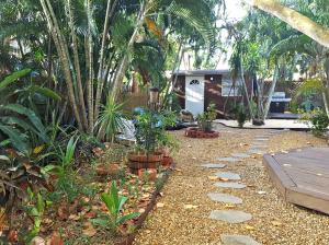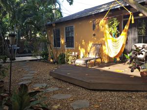 This 1940's bungalow boasts many unique features and truly is a must see! The 2-bedroom / 2-bathroom home features Dade County pine floors, tongue and groove solid wood walls and ceilings, renovated bathrooms, working fireplace and a Florida room with open beam ceiling, floor to ceiling windows and sliding doors that open to the wood deck. The tropical landscaping is the star of the home with 3 massive Sea Grapes, 30-foot bamboo, mango tree, a variety of palms and smaller foliage accenting the yard with river stone and coquina sand ground covering. The fully fenced yard features a concrete patio, two wood decks, full size shed and room for a pool. Other upgrades include a new electric panel, new copper and pvc plumbing, natural gas for water heater, dryer and stove and a newer A/C.