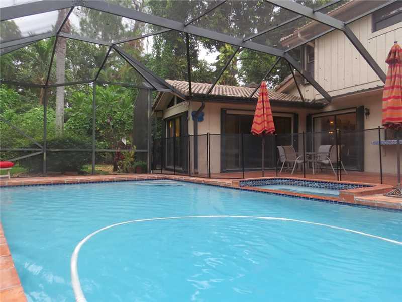 It's your lucky day! The tropical entrance to this lovely home is just the beginning. Perfect for a large family, 5 spacious bedrooms include an in-law suite leading out to an immense screened, heated, saltwater pool with spa. Kitchen, dining & family roo m also overlook the pool and private backyard. Meticulously maintained, with Trane A/C units serviced every 6 months, hurricane protection, termite warranty, roof warranty, walk-in closets, pool safety fence, great schools & more. This home will go fast!