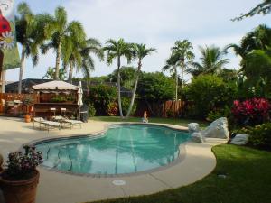 Fabulous Palm Beach Farms ranch. Open and spacious floor plan with split bedrooms. Vaulted ceilings. New Impact doors and windows complete. New roof 2005. Accordion shutters for extra protection. Whole house generator- 40KW Quiet Source. Automatically switches on in power outages. 500 gal gas tank. New crown moulding & baseboards. New knockdown ceilings. Custom fitted closets. Beautiful double Mahogany impact front doors. Insulated impact overhead garage door with upgraded 3/4 horsepower opener. Extra insulation blown into attic. Too many upgrades to mention! Freshly stained fenced backyard. Custom sports pool with spacious patio area and waterfall. Wrap around covered screened patio. Private outdoor shower. No neighbors across the street, enjoy tropical birds, fish and turtles.