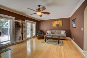 Located in the heart of one of Boca's most charming neighborhoods, this home sits on a corner lot with an oversized backyard oasis. With architectural details in the style of Addision Mizner, this open floor concept home is perfect for entertaining both indoors and out - french doors from the living and dining rooms lead out to a large screened-in lanai. On one side of the house there are 2 spacious bedrooms and a bathroom; on the other side are the master suite and a large den that could easily be transformed into an additional bedroom. The backyard is a place to get away from it all, where you can rest, relax, and even pick fresh mangoes from your very own trees. A newly renovated saltwater free form pool and brick pavered patio welcome you to paradise.