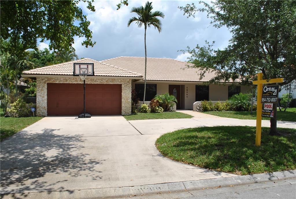 Well maintained home featuring open floor plan, vaulted ceiling, wood laminated floors in kit. family rm. & hallway. Remodeled bathrms w/all newer fixtues,tile walls & floors. Master bath has separate seamless shower enclosure & spa tub. impact windows plus shutters, roof 9 yrs new, covered patio & circular driveway