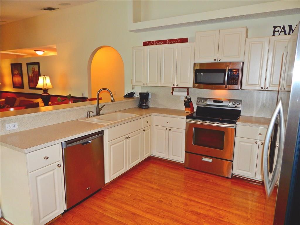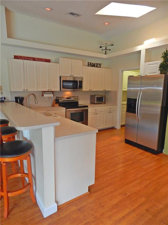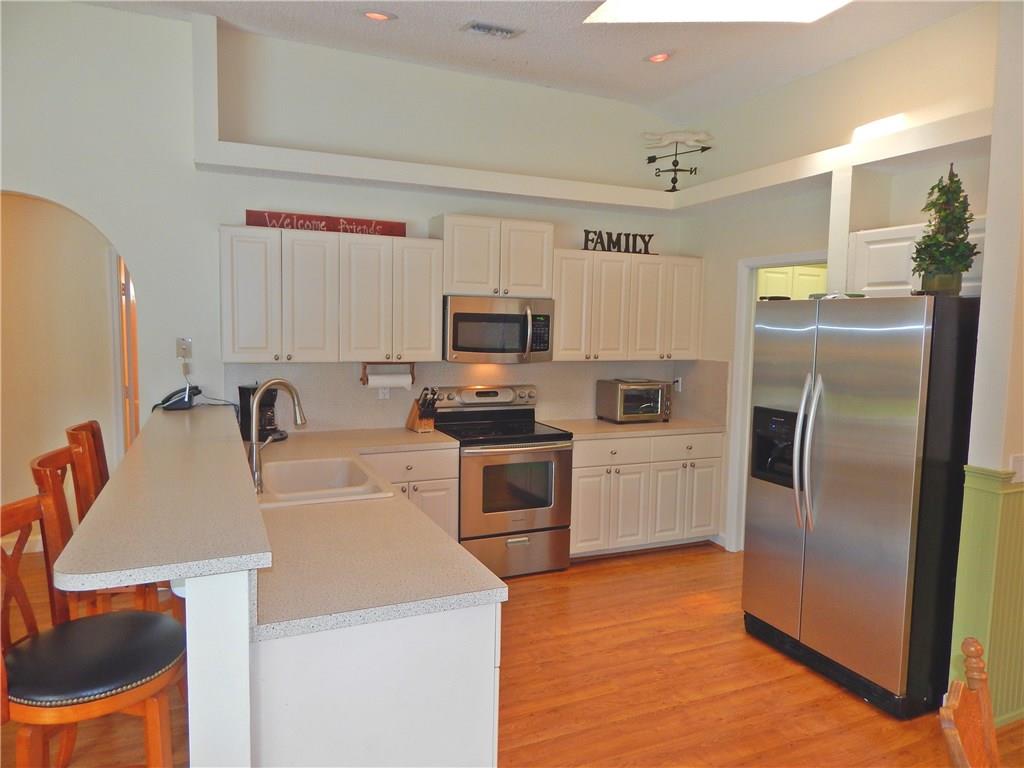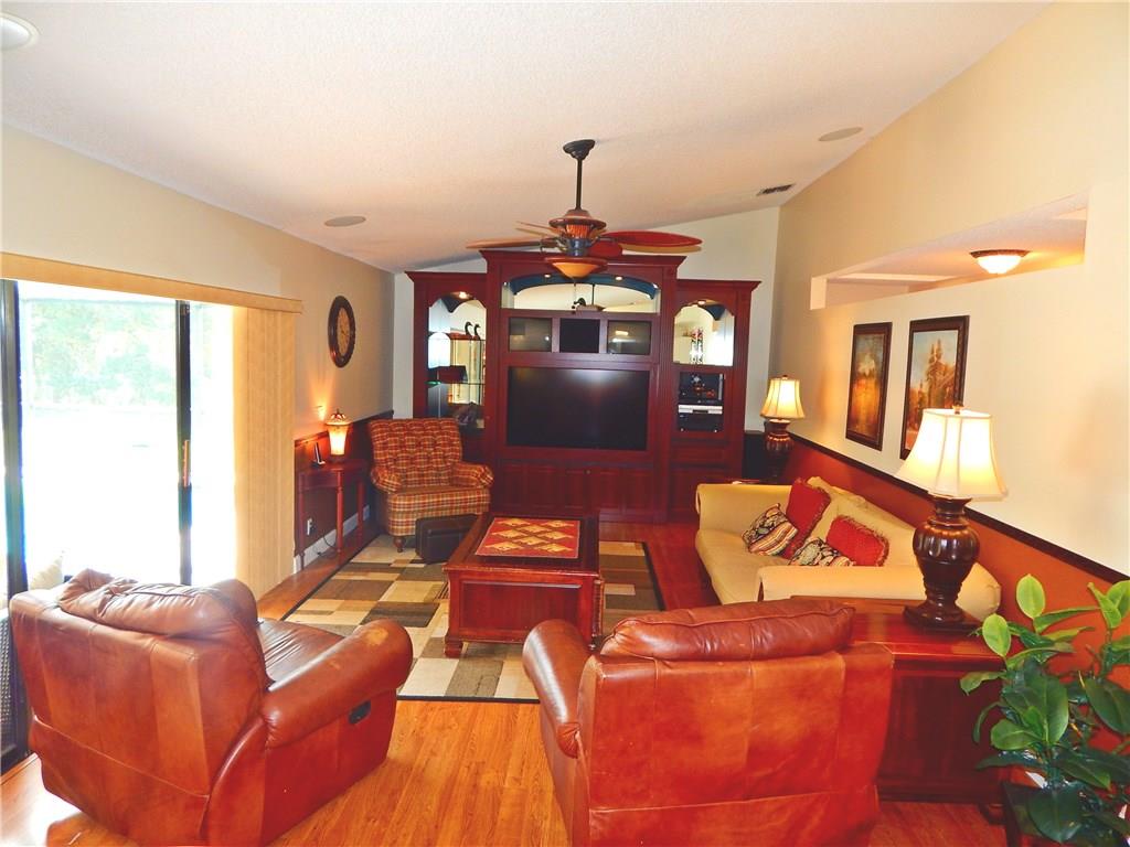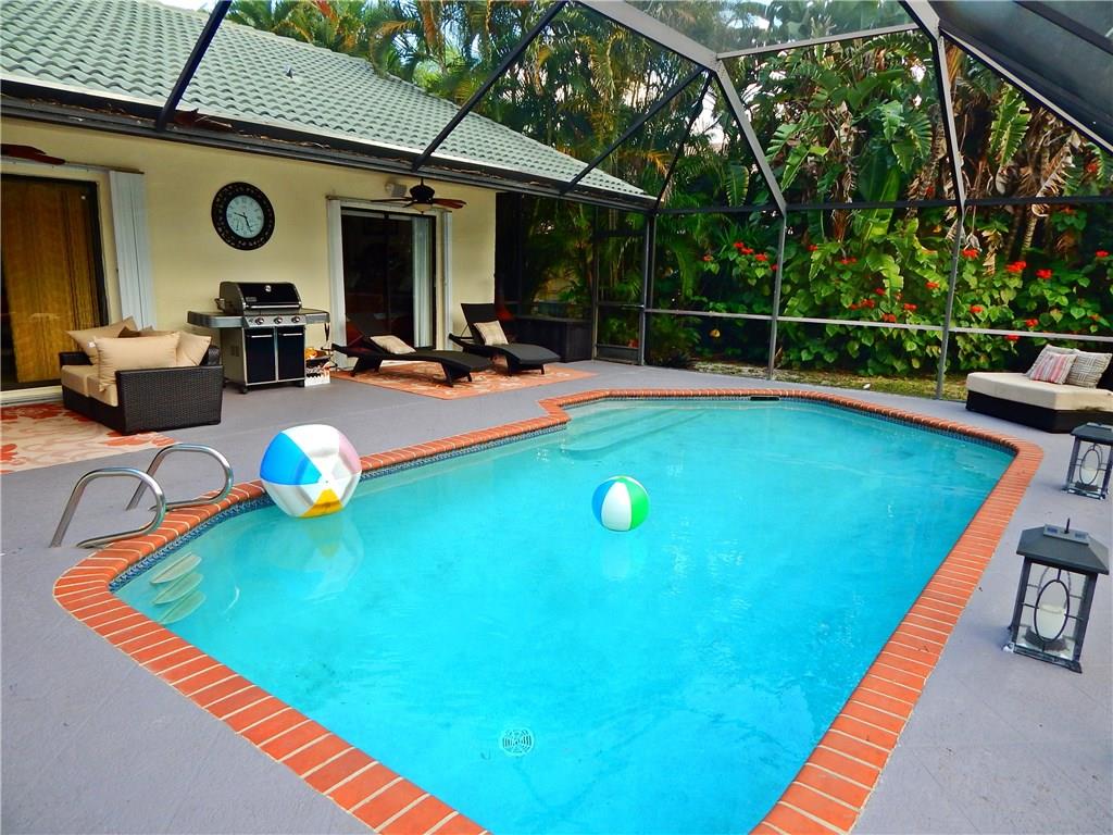 This 4 bed/3 bath Pool home will surely deliver all the comforts a family needs. Private interior lot with with a large screened in patio that will allow you to enjoy it all year long. The fantastic curb appeal invites you into the spacious split bedroom floor plan. Skylights. Eat in kitchen with stainless steel appliances. Newer roof, AC & water hater. Recently painted inside and out. Accordion shutters! Entertainment center + 65 IN TV + 2 x 20 IN TV's re included.