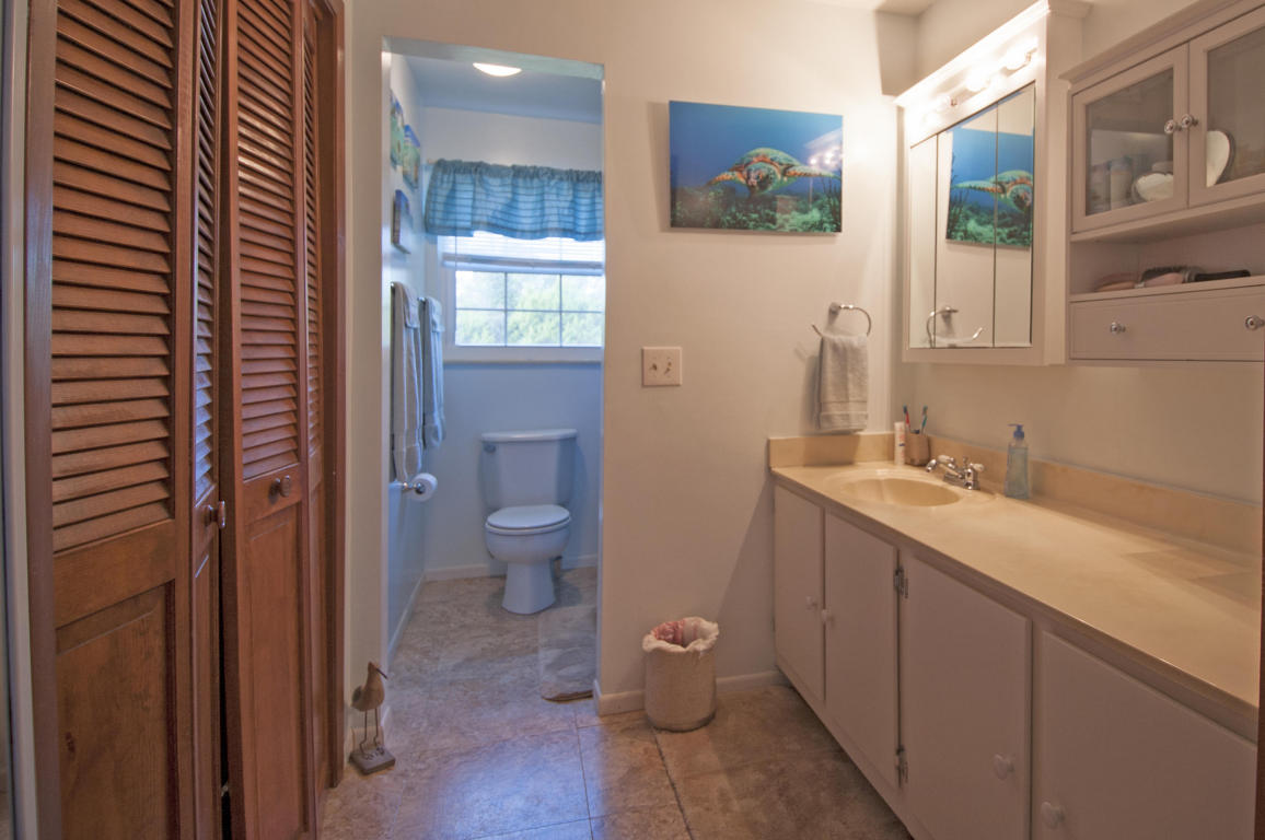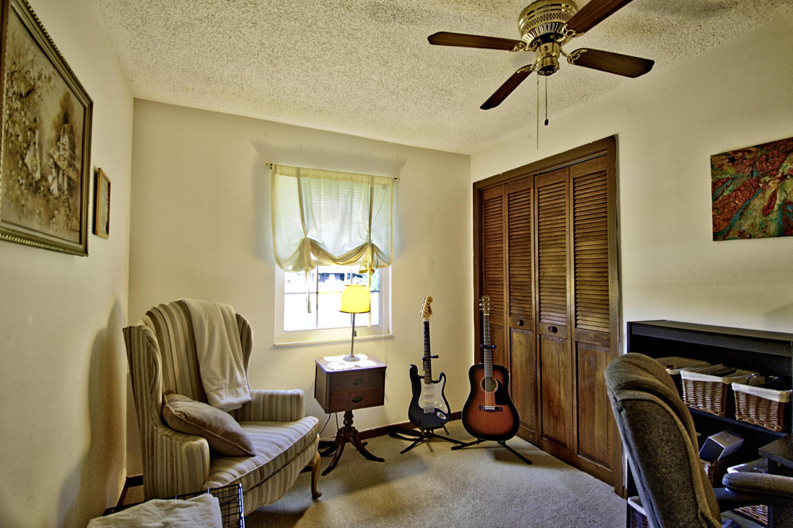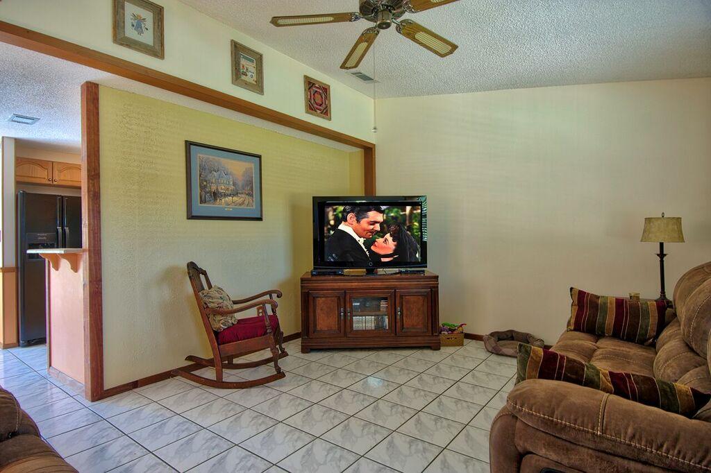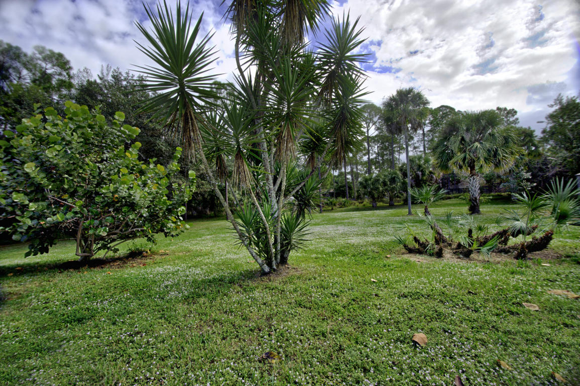 This light and bright, charming 3/2 with oversized 2 car garage on huge 1+ acre lot is located on a quiet street. This lovely home has a canal all along the east side of the lot that provides plenty of privacy. There is a delightful pond in front. This wonderful home features two decks, one at the front entry and in back, overlooking the large yard. The living area has a vaulted ceiling, tile floors and french doors leading to the outside entertainment area. The kitchen opens to the sunny dining room. The master suite is generously sized. New composite decks in 2015. Fresh paint. New roof 2005. Lush landscaping. Room for pool and/or extra building. Own your own piece of paradise today!