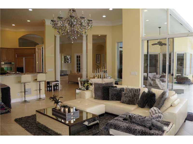 Perhaps the most Spectacular view in Weston Hills on this 19,159 SF Point Lot with Golf and Lake. This elegant custom home has features found in Multi-Million Dollar homes. Resort style Pool/Patio area w/ stunning Outdoor Summer Kitchen-"A Chef's Dream". Interior w fine craftsmanship throughout. Open floor plan, 6 bedrooms + den with 5 full baths. Separate guest/in-law quarters. Spacious Master w Sitting Area. Wood Kitchen cabinets w/granite tops & SS Appliances. Cabana Bath with Steam/Sauna, 3 car garage