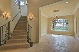 Tuscan villa inspired home in Royal Palm Yacht & Country Club with 4 bedrooms + bonus room and den, 5 full and 2 half bathrooms, and 5,124 sqft under air. This interior two-story home has a gated courtyard entry, 3 car garage and front circular brick paver driveway. Home features volume ceilings, custom molding details, marble flooring throughout all main living areas, 1st floor guest suite, gourmet kitchen with walk-in pantry, formal living and dining rooms, library/study with wood flooring and custom wood built-ins. 2nd floor master suite with his and her walk-in closets, sitting room/5th bedroom, private balcony, large bathroom with jetted tub, separate glass enclosed shower, sink, vanity and private water closet. Other features include 2nd floor laundry room and upstairs loft area.