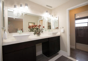 STUNNING! Completely remodeled 3 bed 2 bath lake home in the heart of West Palm Beach! The high end finishes of this home will take your breath away as you enter the foyer. Brand new floors shine in this bright open floor plan & continue through the kitchen & main living areas. Formal living & dining rooms are elegant with a fireplace, decorative molding, soaring ceilings, & impressive chandelier. The kitchen was remodeled to perfection & features solid wood cabinets, unique granite/quartz counters with chic backsplash, stainless steel appliances including wine fridge, pantry & extended island with bar stool seating open to the family room. The master retreat is spacious & radiant with sliders leading to the patio & luxurious en suite with marble vanity, exquisite fixtures, & custom shower