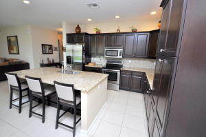 Beautiful lakefront home in the gated community of Portosol! This home features an oversized backyard with an amazing lake view and plenty of room for a pool! The gourmet kitchen is equipped with stainless steel appliances, granite counter tops and 42' wood cabinets. The luxurious master bathroom has a Jacuzzi tub and seamless shower. The downstairs den can easily be converted into a 5th bedroom. The spacious living areas have tile throughout. Expansive lake views from almost every room! Home also features a paver driveway and lush landscaping. Live the resort lifestyle in this well maintained community which features a fitness center, billiards room, outdoor basketball and tennis courts, a resort-style swimming pool and much more.