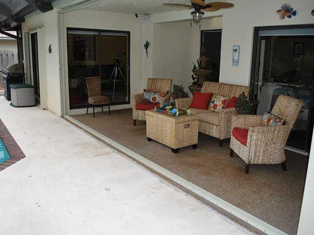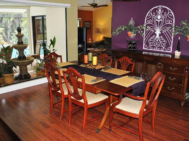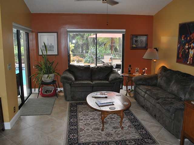 Custom built home all around that is made for entertaining, Professional sound wiring through, open floor plan, large Island kitchen with wall oven, new carpets in all the bedrooms, updated 20" tiles in foyer, laundry room with pantry. roman tub in master , Large pool with waterfall inside the fully fenced backyard newer trane AC, camera security system, beautiful landscaping, and hurricane shutters.