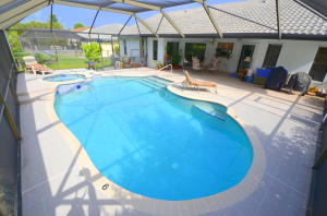 Owner Motivated! Bright, open and airy single family home in the amazing community of Boca Fontana. Large screened in pool with Jacuzzi. Newer barrel tile roof. Ceramic tile in most rooms except for a very high end wood laminate in the formal living room and 2 of the guest bedrooms. This home flows very nicely with a split bedroom plan. Low HOA Fee! Includes cable TV w/ HBO. The community has 2 pools, 2 lighted tennis courts, basketball court, racquetball court, plus great walking paths. Close to shopping, restaurants & amazing schools. All ages and pet friendly.
