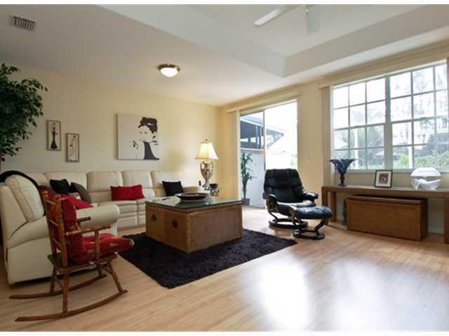 Picture perfect town home on quiet interior waterfront lot. Each bedroom holds a king size bed set. Large great room. South facing screened patio overlooking waterway and single family homes. Bedrooms are larger than most homes. Beautifully appointed with laminate floors, tasteful paint tones thru-out. New roof 2011. One car garage and plenty of guest parking. Gated community with pool. Walk to the center of town. Largest three bedroom unit in best location.