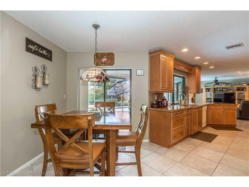 LOVELY 4BR/2BA POOL HOME ON OVER 1/3RD ACRE LOT. New AC in 2015 and new roof in 2006. Open floor with separate living and family rooms. Gorgeous kitchen with wood cabinets, granite, counters and back splash, pantry and pass thru window to spacious screene d in pool/patio area. Just perfect for entertaining. Split bedroom plan with nice size master suite and master bath with dual sinks, separate shower and roman tub. Tropical pool setting in central location close to schools, parks, shopping & dining.