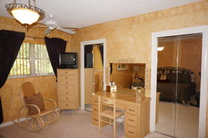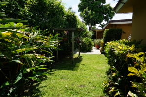 Wonderfully located home situated in desirable Lake block between Flagler Drive and Olive Avenue. This spacious home has delightful areas for entertaining. It boasts an unusually large amount of storage both inside the home, and also in the adjoining utility room. The original garage was converted to a bedroom and living area including a small kitchen and full bath. This room is now a study, but could be a 4th bedroom or entertainment room. Lovely corner master bedroom features a dressing area, walk in closet, wall closet and en-suite bath. The spacious second bedroom has two large walk-in closets and a hallway closet. The kitchen has a nice view to the garden and fountain. Large walk in pantry/storage area. Home is being sold by original owners. Gracious living.