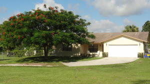 This beautifully maintained, 3 bedroom, 2 bath ranch home on 1.25 acres in The Acreage is close to great schools and shopping. Wide-open floor plan with central living room and connecting L shaped dining area leading to the kitchen. Beyond the living room, is an extra large family room--perfect for entertaining! From the family room, you have an elevated, outdoor deck to have your next B-B-Q! New 18'' tile (laid on the diagonal) throughout and new carpet in the bedrooms. Freshly painted. All in neutral colors. A gardeners delight with over 33 various fruit and nut trees planted throughout the 1.25 acres! New Roof-2008, AC handler/compressor-2011, 80-gallon water heater-2008, Atlantic Water Treatment System-2011. Pride in ownership shows in every detail--come see it today!