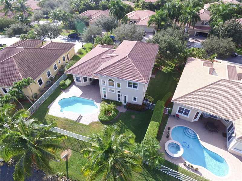 BEAUTIFUL HOME IS LOCATED ON A TROPICALLY LANDSCAPED LOT WITH WIDE WATER VIEWS IN ONE OF CORAL SPRINGS MOST SOUGHT AFTER GATED COMMUNITIES! FEATURES INCLUDE A FOYER ENTRANCE, FORMAL LIVING & DINING ROOMS, A GOURMET KITCHEN W/ CHERRY WOOD CABINETS, CENTER ISLAND, DOUBLE OVENS, GRANITE COUNTERS, BREAKFAST AREA, FAMILY ROOM, HARDWOOD & TILE FLOORING, LOFT,COVERED BRICK PAVER PATIO, OPEN POOL & FENCED YARD! GREAT LOCATION AND GREAT SCHOOLS! ENJOY SOUTH FLORIDA LIVING IN YOUR OWN BACK YARD PARADISE!