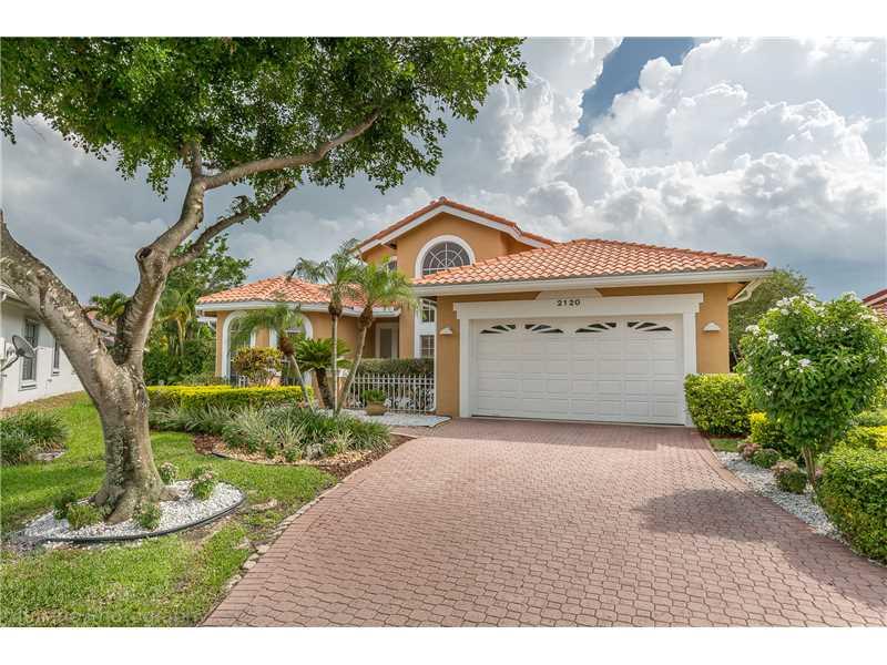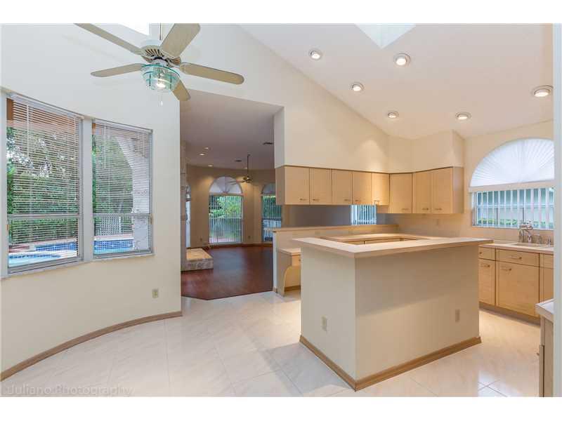 NEAT, CLEAN & BRIGHT IS THIS 4BR/4BA HEATED POOL & SPA HOME IN GATED GOLF COMMUNITY. New roof installed in 2007, 2 zone a/c installed in 2010 & 2006. Interior of home freshly painted. Features include split bedroom plan. vaulted ceilings, French doors, sk ylights, tile & laminate wood flooring, new dishwasher, oven & microwave. Cut Coral double sided fireplace in family room open to patio & pool. Private fenced backyard with paver deck &patio. A tropical oasis... just perfect for relaxing or entertaining.