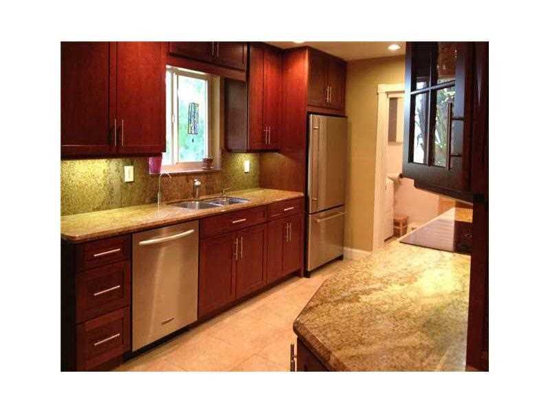 Lovely East Boca home with open floor plan and brand new A/C. Spacious kitchen with 42" cherry cabinets, pullouts, premium and stainless steel appliances, and granite. Porcelain tile in common areas and 2 bedrooms, engineered hardwood in 2 bedrooms. Lots of storage, walk-in closet in master. Master bath offers travertine, cherry cabinets, and granite. Impact windows and French Doors, large fenced paved backyard, lush foliage, great custom storage shed/workspace. A rated schools, beach, and parks close by.