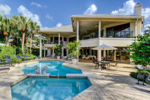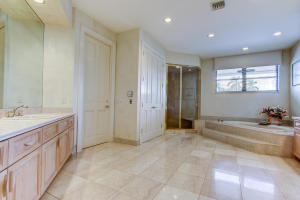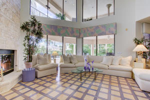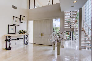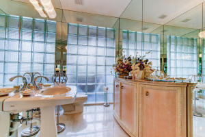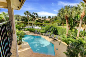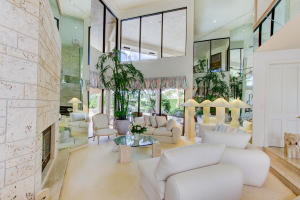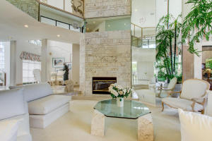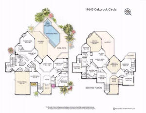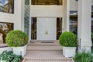 This magnificent 5 bedrooms, 5 bathrooms, 2 half baths home is situated in the exclusive, privately gated Oakbrook community within Boca West Country Club. The entrance features lovely landscaping, 3 car garage with circular driveway. Front entry opens into a large foyer, dining room and step down carpeted living room with a breathtaking view of the pool, spa area and water view. Truly resort living. This home boasts high ceilings, a state of the art media room with flat screen TV and projector, marble floors, fitness room, family room with oak custom designed flooring, 4- Zone A/C units, 2 coral stone gas fireplaces, elevator, retractable electronically controlled phantom screens on the downstairs pool patio. Home is being sold furnished.