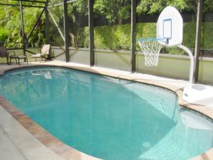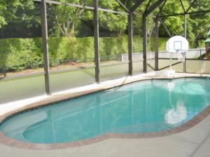 This 4br home in desirable Boca Winds backing to private preserve has fenced yard + heated dome screened salt system pool w/large porch & patio.Beautiful 20'' stone look tile on the diagonal & 5'' baseboards in all living areas. Open kitchen w/island & lots of counter space, has updated 42'' cabinets, granite counters & tumble marble backsplash. Vaulted ceilings w/knockdown finish. Master Suite has large walk-in closet w/customized cabinets & shelving plus additional closet, double vanities, separate shower, soaking tub & vaulted ceilings. Additional bedrooms have customized closets.Updated 2nd bath has wood vanity w/marble top,new fixtures & glass tile backsplash. New AC 2015. Accordion Shutters. ''A'' rated schools, parks, shopping all nearby. Low HOA fee includes cable & community pool.