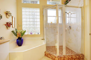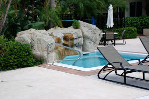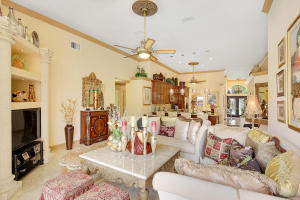 BREATHTAKING RECENTLY UPDATED DESIGNER LIVING with no detail left unfinished. CHECK OUT VIDEO UNDER PHOTO TAB. Custom made pillars, cabinets, and built-in entertainment center. Hand painted fountain spills into the hot tub which spills into into the salt water pool. With a flip of a switch a screen shades the patio and keeps it pest free. Crystal and designer light fixtures throughout. Marble look ceramic tile and central vac. Kitchen boasts high gloss custom cabinets, granite counter, marble and crystal mosaic back-splash, stainless premium appliances, eat-in kitchen plus formal dining room. Master bedroom overlooks patio and pool with 2 walk in custom closets. Furniture negotiable.