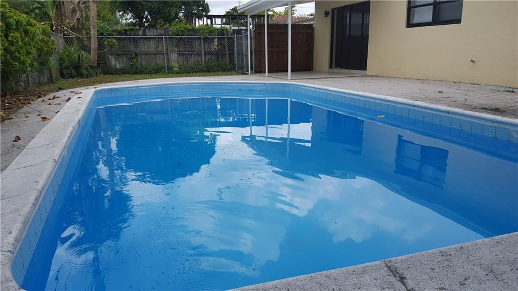 Renovated 3/2 with carport & pool! Upgraded kitchen cabinets with granite countertops & backsplash. Wood laminate flooring throughout except for the bathrooms both are tile. The laundry room can also be used as extra storage, notice the hurricane shutters in the photo they too go with the house, brand new permitted driveway, fenced in backyard with plenty of room for entertaining pool-side plus a covered back patio for shade.