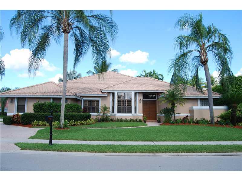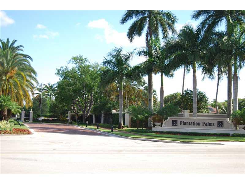BEAUTIFUL 4/3 HOME IN THE EXCLUSIVE GUARD GATED COMMUNITY OF PLANTATION PALMS! LIGH AND BRIGHT THROUGHOUT! TRIPLE SPLIT FLOOR PLAN W/TILE IN ALL LIVING AREAS. UPDATED KITCHEN W/CORIAN COUNTER TOPS & WOOD CABINETS, PLANTATION SHUTTERS, SERENE POOL AREA W/S CREENED PATIO PERFECT FOR ENTERTAINING, ACCORDION SHUTTERS, OVERSIZED AND PRIVATE CORNER LOT SURROUNDED BY LUSH LANDSCAPING, WALKING DISTANCE TO SCHOOLS, HOUSES OF WORSHIP AND SHOPPING!