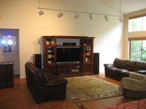 This is the perfect home for today's lifestyles. The great-room type layout has a massive living and dining area with vaulted ceilings: terra cotta tiled floors and a kitchen that is open to all. It gives you the maximum flexibility for enjoying and entertaining friends and family. The kitchen counters and snack bar are tiled. You'll love using the brand new (July 2014)GAS LG stove!!All the other appliances are newer, stainless steel LG's too! Plus, there are 2 windows in the kitchen!The versatile living/dining area overlooks the screened patio and the private, lush backyard.The master bedroom is on the first floor with sliders leading to the patio; ensuite bathroom with dual sinks & roman tub; plus a roomy walk-in closet. The comfortable 2nd & 3rd bedrooms are upstairs. The guest