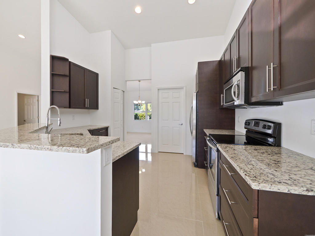 Every once in a while a special property in a special location becomes available and if you are looking for the ideal location in Lake Clarke Shores this may be it. With four bedrooms and three bathrooms this new custom home is remarkable in every way. Tucked away on a quiet street with close proximity to both downtown West Palm Beach and Lake Worth. The open floor plan features a split bedroom plan with the oversized 4th bedroom at the front of the home. Set up today as a den it would be very simple to wall in the closet if one wanted a true 4th bedroom. Luxurious finishes throughout with sparkling porcelain floors in every room; no carpet to worry about. Custom gourmet kitchen open to the living areas features wood cabinetry, granite countertops and gleaming stainless steel appliances.