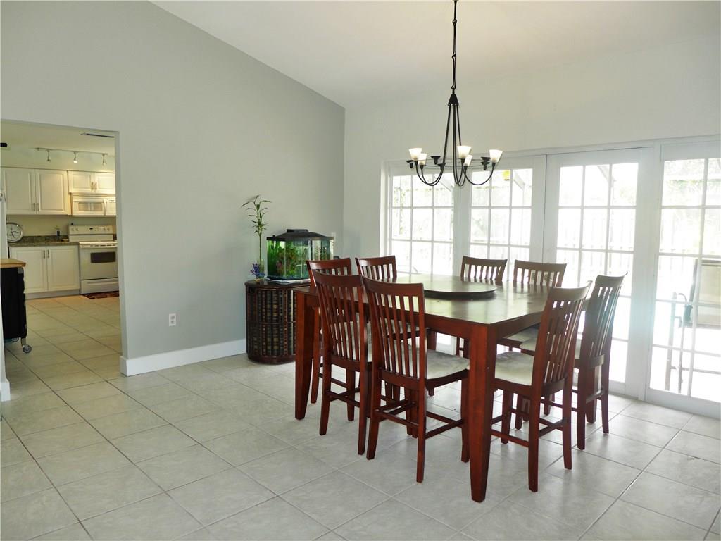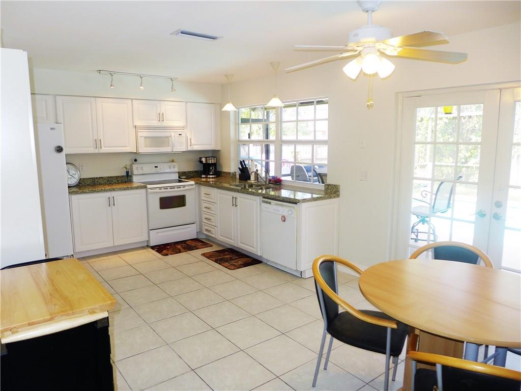 Modern remodeled 3 Bed/2 Bath home featuring a den to use as office/mancave/arts & crafts! Kitchen has granite counter tops & white cabinets w/ large eat in area! Home boasts vaulted ceilings, no popcorn, large 16" tile, new wood floors w/ modern baseboards! Impact windows & french doors! Huge screened patio w/large pool! Lots of room for entertaining! Over-sized corner lot! This home is move in ready! Beautiful well kept community, NO HOA, walking distance to parks, playgrounds & lake! Great location!