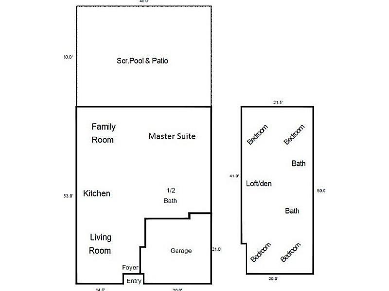 Bright & open design with 22' ceilings w/ 2nd story loft area w/ 4 bdrm & 2 baths. Loft has skylights & a full mirrored wall that is designed as an exercise space/dance. 1st floor Master has his & her walk in closets & dressing/sitting area, updated maste r bath w/ walk in shower & Roman Tub. Updated kitchen cabinets are glazed maple w/ dark granite counters as well as 2 pantries. Family room w/ french doors out to the pool & large covered screened enclosure. Backyard is tropical & completely fenced.