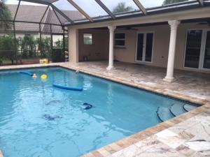 First time on the market this beautifully upgraded 3 bedroom 2 bathroom home is located in Boca Greens. This home sits at the end of a cul de sac with a huge yard overlooking the lake. The home has windows that have been replaced with impact windows and a newer hot water heater. Marble flooring throughout the home with wood flooring in the bedrooms. In the home is an amazing Thomasville gourmet kitchen with top of the line appliances. Attention to detail sets this home apart from the others. Pool with multi color lighting and an outdoor area that is prepped for a kitchen. No only is it the outdoor patio covered the pool is also screened in. The pool is heated by solar panels. Situated on an oversized pie shaped lot.
