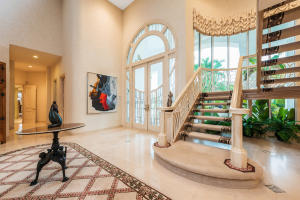 Welcome to this prestigious gated country club community ranked among the distinguished five-star Platinum Clubs of America. This large estate home on over 1/2 an acre with pool and lake views. Enter the glass double doors to 24 inch marble flooring, custom window treatments, den custom wood walls and trim and built ins, wet bar with freezer and refrigerator, kitchen offers , two double door pantry, double oven with top being a convection, Jen air gas grill on your island, sub zero refrigerator and full freezer ,trash compacter, instant hot water. Filtered water throughout home, custom white cabinetry with granite counters, master offers his and her bathrooms with Jacuzzi tub, glass etched and enclose shower, his offers glass enclosed shower with steam ,multiple jets, 2 first floor guest