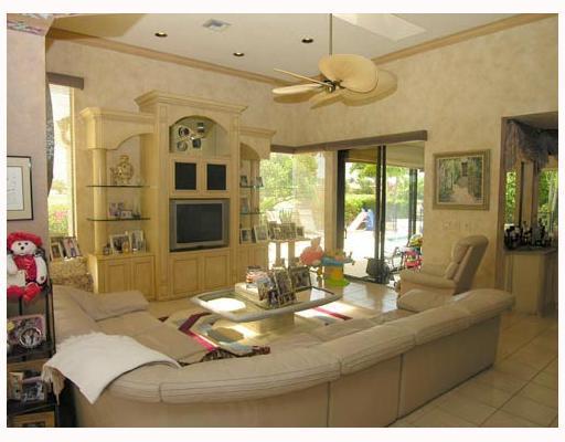 Beautifully landscape w/lake and golf vistas, koi pond with rock waterfall, 4 bedroom, entertainment media room. Full house generator, hurricane shutters, pool heater with jandy control. Hurricane proof garage doors. Many built-ins. Square footage shows larger than tax rolls due to air conditioned enclosed porch and expanded bedroom.