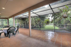 This neighborhood is a hidden gem. The small subdivision off Florida Mango just north of Forest Hill is dotted with well manicured homes and this home is no exception. Nestled under a mature oak tree, this 2-story 3 bedroom home is a great family home. The first floor features a formal living room upon entry, formal dining room, large kitchen that opens to a spacious great room with fireplace, a separate family room (could be fourth bedroom) and half bath. The kitchen and great room look onto a very large 37 foot by 19 foot covered screen enclosed patio overlooking the back yard. This is a great outside entertaining space. Mature vegetation provides a protected and lush backdrop to the yard. The second floor has 2 guest bedrooms and guest bath and an exceptionally large