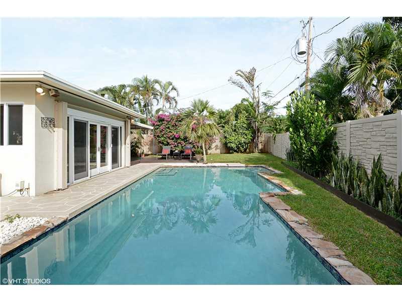 Recently renovated 3BR/2BA classic ranch in Coral Ridge. Open floor plan. New gourmet kitchen. Subway tile backsplash & quartz counters. Stainless appliances. Induction cooktop. Breakfast bar & pantry. Front loading washer/dryer. Beautiful main bath w/new travertine marble floors, "floating cabinets" & quartz counters. Newer AC. Great yard. Large pool. New wood deck & stamped concrete pool surround. Oversized 2CG. Most windows hurricane impact. Close to top rated Bayview elementary, beach & shopping.