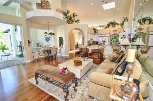 THIS FABULOUS COURTYARD HOME WITH A ONE BEDROOM GUEST HOUSE HAS IT ALL! . 3 BEDRMS, 3 1/2 BTHS, GRANITE KITCHEN WITH OPEN FAMILY ROOM, BEAUTIFUL WOOD FLOORS, HIGH CEILINGS, LIGHT BRIGHT SPLIT FLOOR PLAN,SOLAR HEATED POOL & SPA SET IN A LUSH TROPICAL PRIVATE SETTING WITH BEAUTIFUL VIEWS FROM EVERY ROOM. IMMACULATE MOVE IN CONDITION! GOLF AND TENNIS MEMBERSHIPS AVAILABLE.