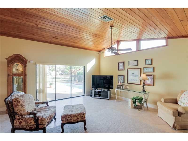 Need room for your children to run around? Then you will love this huge cul de sac pie shaped lot. Backyard is 220' wide! There is a fenced in area for your dog to roam around as well! Inside you will find a completely remodeled gourmet kitchen with high end appliances, vaulted knotty pine lined ceilings, upgraded ceramic tile thru the living areas. Master bathroom has also been remodeled. Home features separate living, dinning and family rooms. Completely private pool area just perfect for family BBQ's!