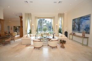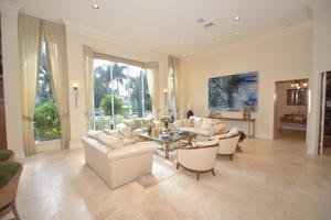 This fabulous 5-bedroom + office home is situated on a beautiful oversized lot. The interior features an open floor plan, marble floors, crown moldings, neutral colors, and lots of natural light. The master suite, along with 2 guest bedrooms, are on the ground floor, and 2 en-suite bedrooms are upstairs. The large, bright, updated kitchen has granite countertops and opens to the breakfast area and family room. Extra-large windows extend along the kitchen and breakfast area, providing verdant views. A large screened-in patio adjoins the family room and complements the lushly landscaped pool, patio, and lawn areas that offer a Southern exposure, privacy, and beautiful expansive water and golf views.