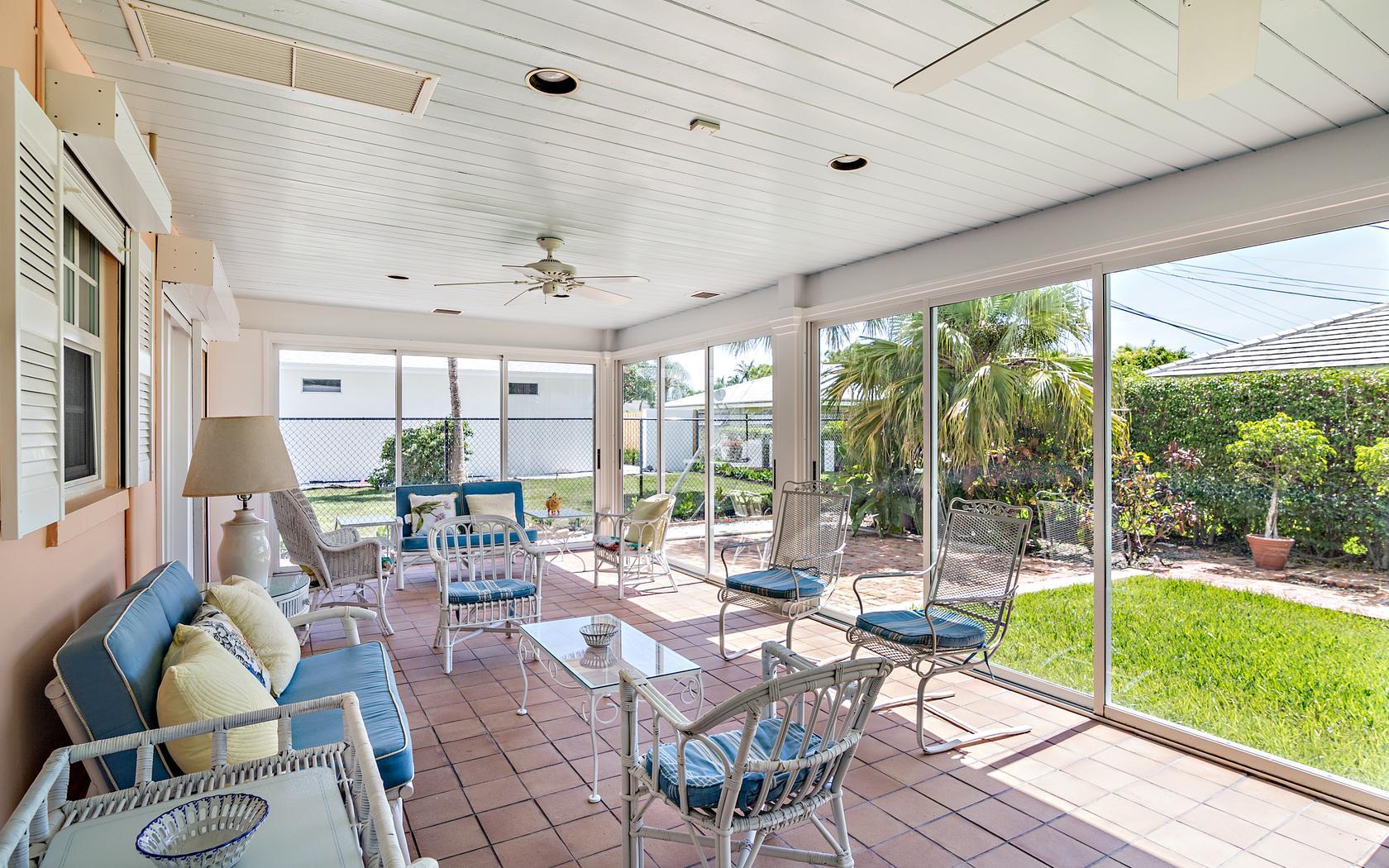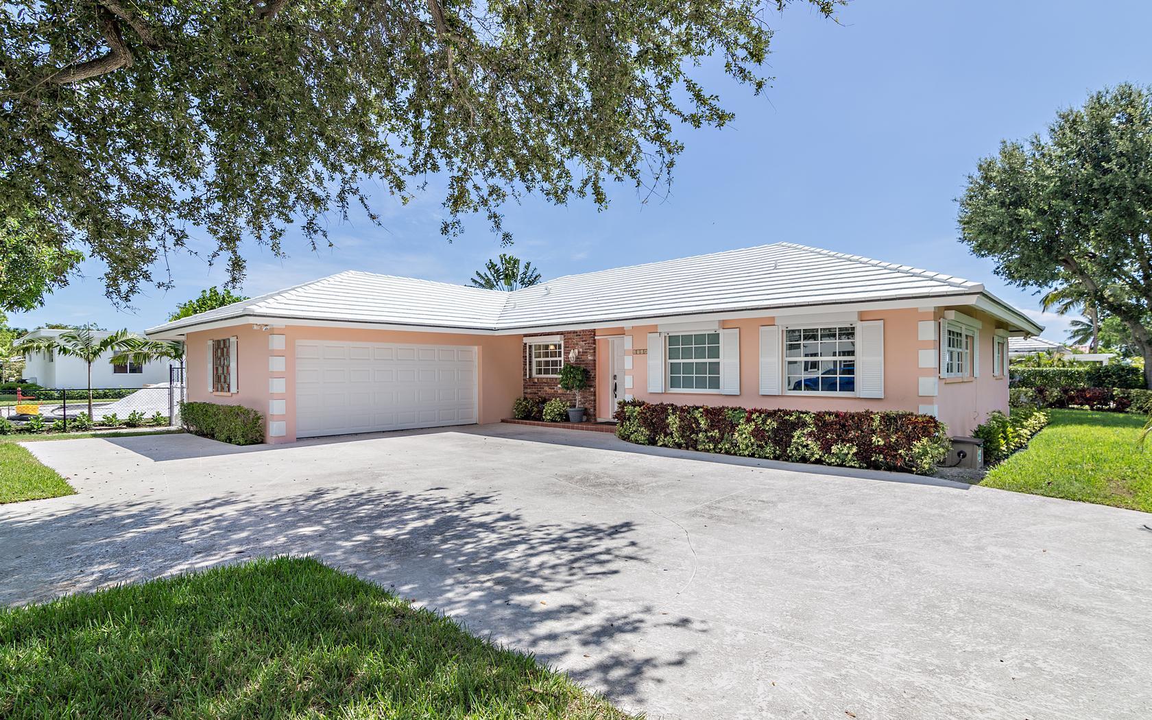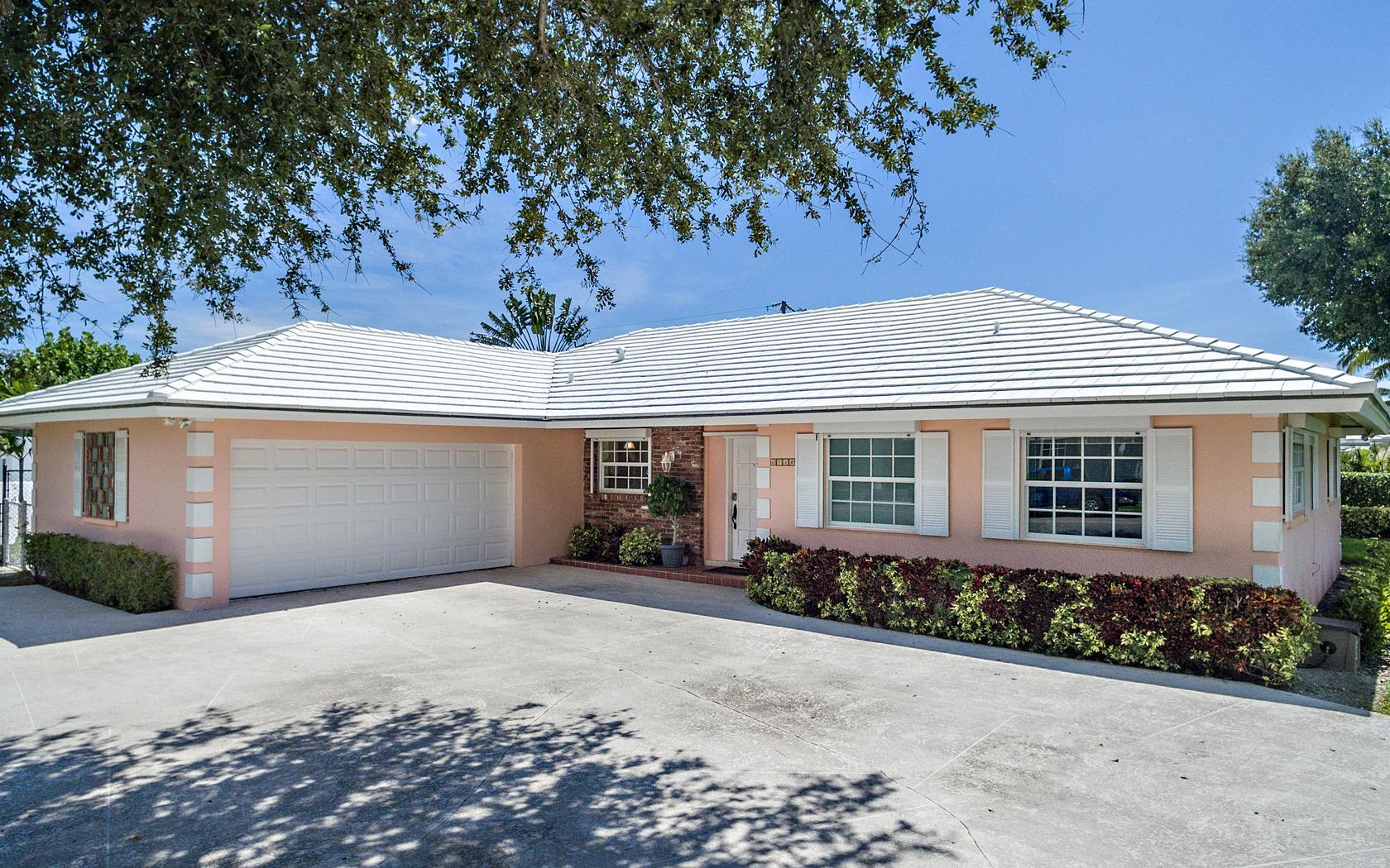 Beautifully maintained 3 bedroom, 2 bath Bermuda style home situated on a large corner lot in the Southend with a 2 car garage. Just 5 houses off the Intracoastal Waterway and Flagler Drive, this immaculate home features a formal entry, large living and dining rooms with French doors to a beautiful glass enclosed Florida room with panoramic garden views. Great kitchen with granite counter tops opens to the family room. Large master suite with French doors and renovated master bath. Split floor plan with two additional spacious bedrooms and bath. 2 car garage with extra storage and plumbing for an additional bath. Beautifully landscaped yard with partial water views. Exceptional value in the Southend.