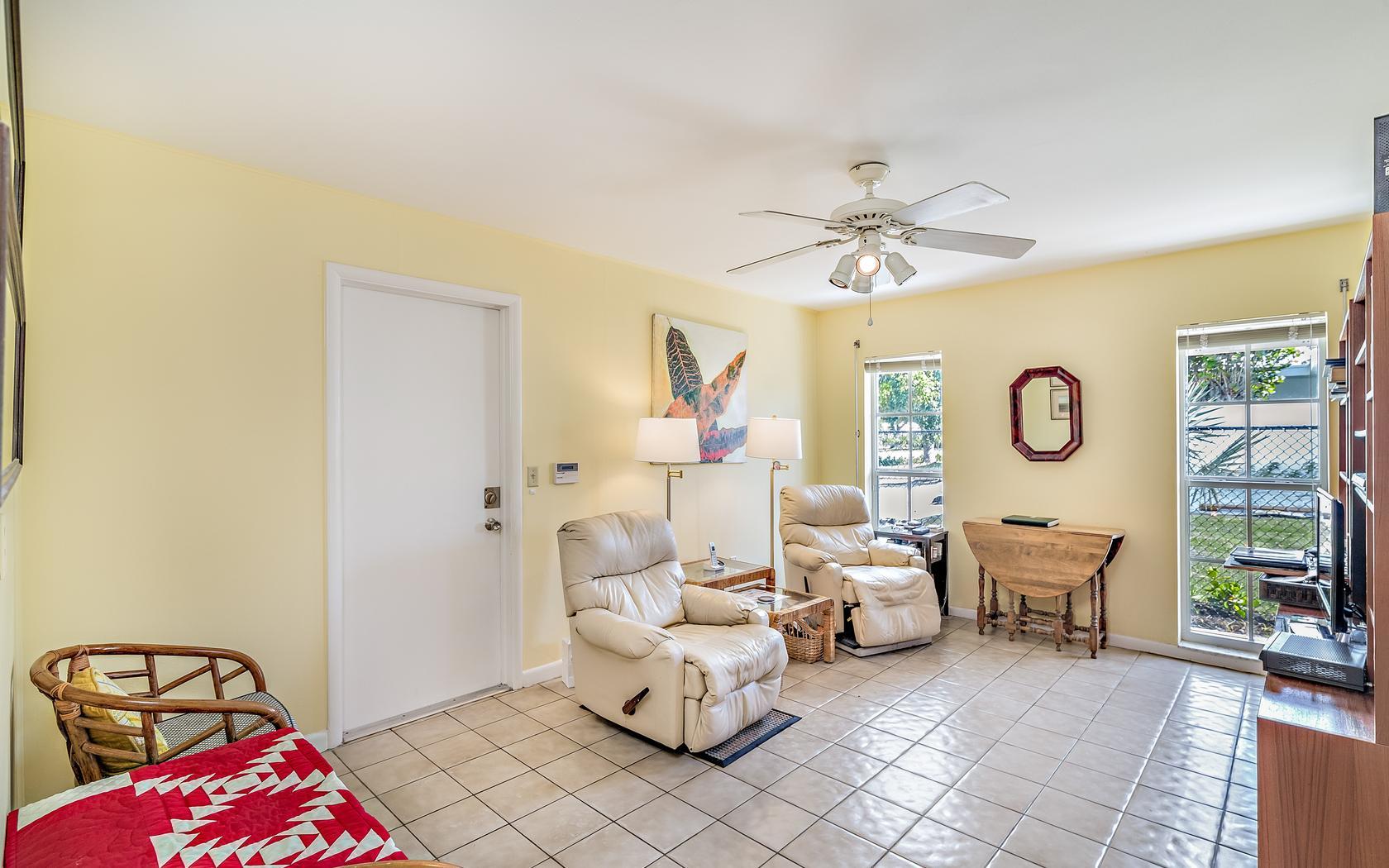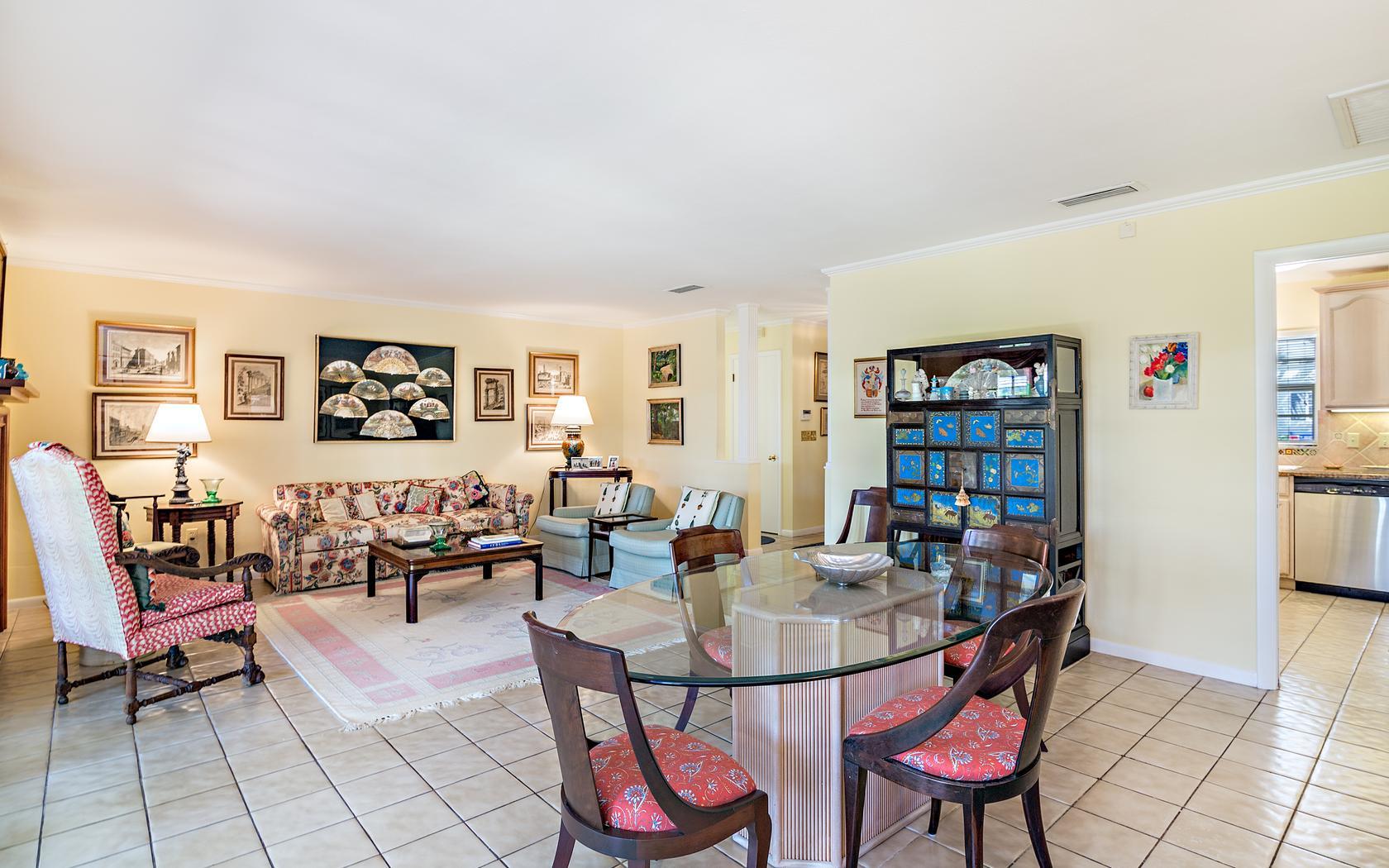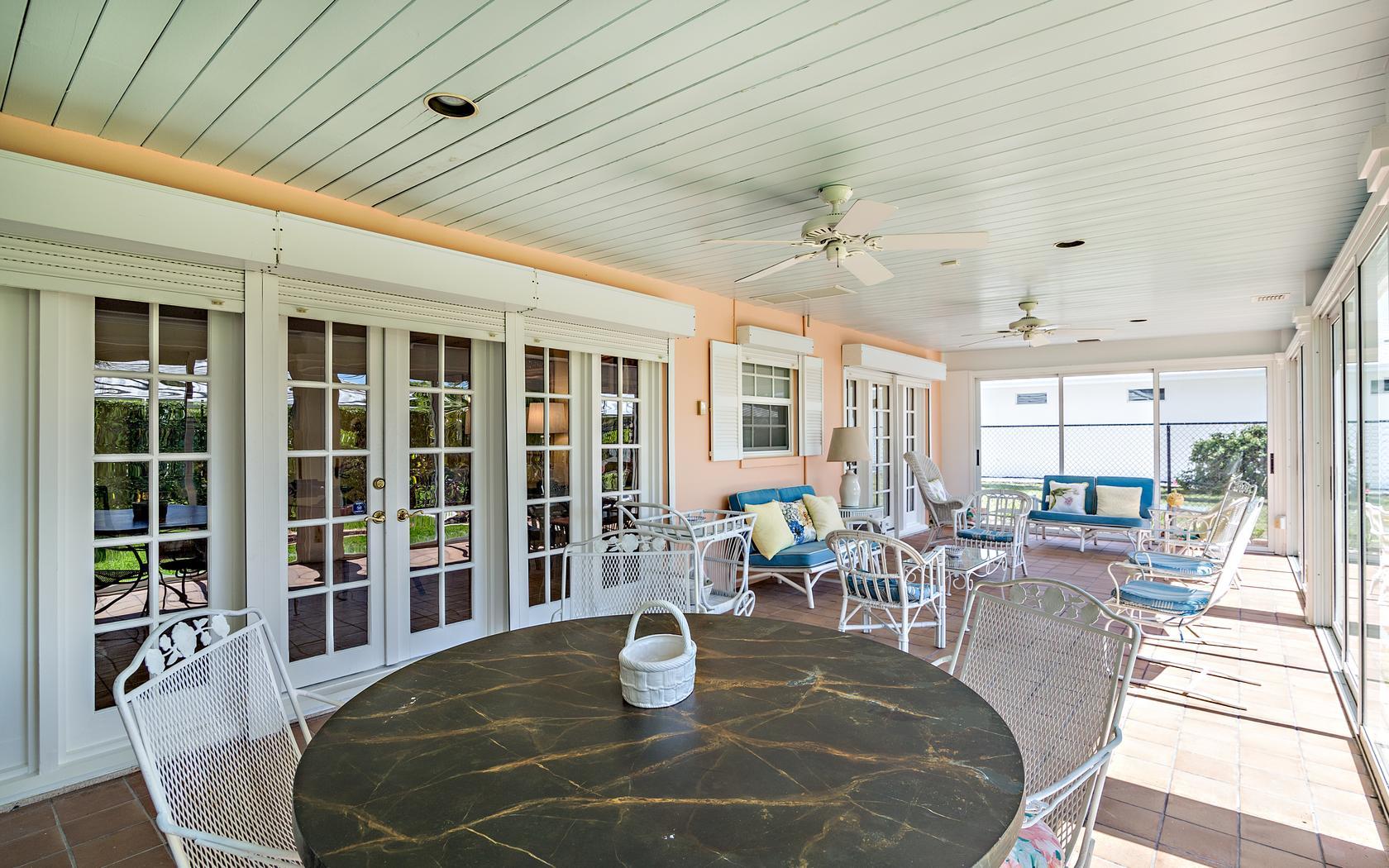Beautifully maintained 3 bedroom, 2 bath Bermuda style home situated on a large corner lot in the Southend with a 2 car garage. Just 5 houses off the Intracoastal Waterway and Flagler Drive, this immaculate home features a formal entry, large living and dining rooms with French doors to a beautiful glass enclosed Florida room with panoramic garden views. Great kitchen with granite counter tops opens to the family room. Large master suite with French doors and renovated master bath. Split floor plan with two additional spacious bedrooms and bath. 2 car garage with extra storage and plumbing for an additional bath. Beautifully landscaped yard with partial water views. Exceptional value in the Southend.