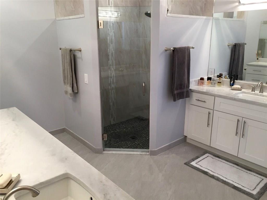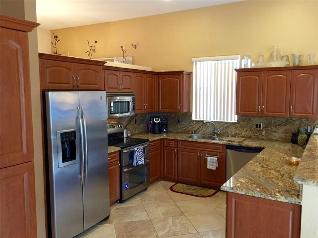 Spacious beautifully renovated 4 BDRM/2.5 BA home in tranquil neighborhood. Porcelain tile floors in the main living area, hardwood in MBRM, and chiseled marble in the office. Newly diamond-brited solar heated pool has new pump/filter, & newer Atrium style pool cage. New air handler and compressor just 2 y.o. Gorgeous newly renovated master bath with quartz dual vanities, soaking tub, and rain shower- also functions as cabana bath. Granite & Stainless Kitchen/undermount stainless sink/ instant hot water