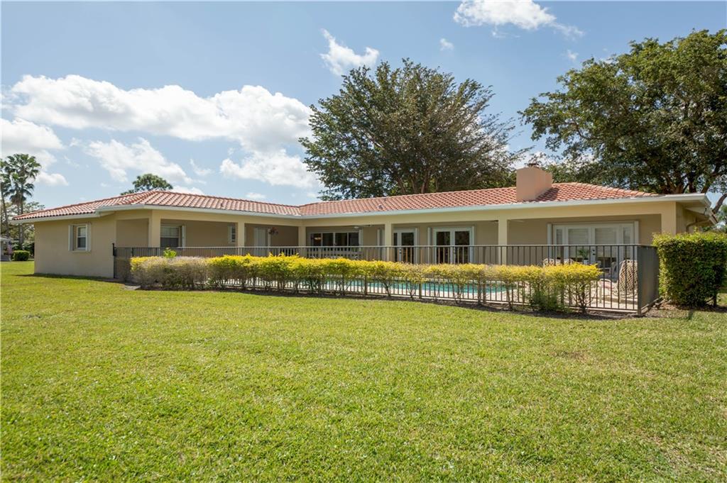Beautifully updated golf course 1/2 acre estate w/ gorgeous water & golf views! Remodeled kitchen in the last 3 years with new cabinets! Great views of the golf course from the pass through kitchen windows! Stainless appliances, built-in Breakfast cabinet t, pantry &granite counter tops! New Laminate wood floors throughout living areas & bedroom 2. Tile roof replaced in 2005. Remodeled bathrooms! Fabulous great room w/fireplace. perfect for entertaining.2nd master/mother-in-law suite. Accordion Shutters!