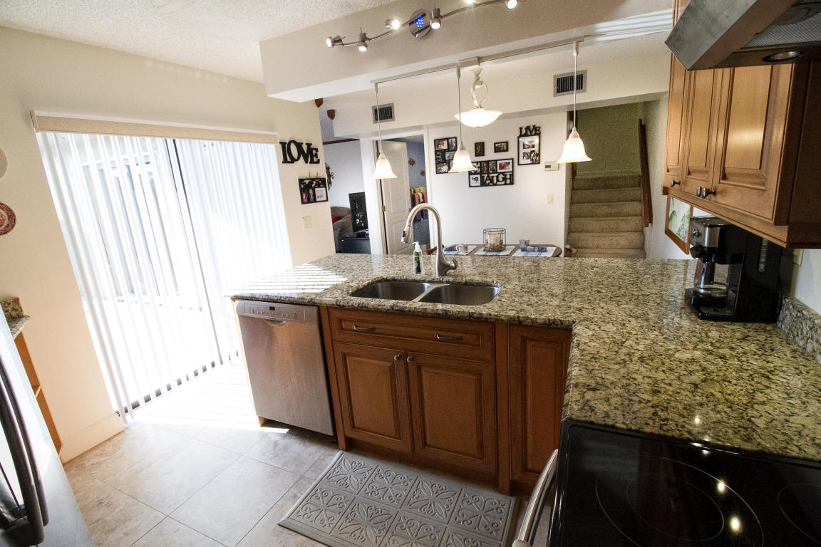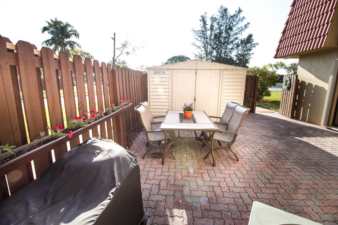 BEAUTIFULLY CARED FOR 2 BEDROOM, 2 1/2 BATH TOWNHOME - OPEN LIVING ROOM FLOWS TO DINING AND KITCHEN AREA - UPDATED KITCHEN FEATURES QUALITY 42'' MAPLE CABINETS, SS APPLIANCES, GRANITE COUNTER TOPS - MASTER AND 2ND BEDROOM HAVE PRIVATE BATHROOMS, WALK IN CLOSETS, SLIDERS OPENING TO BALCONY OVERLOOKING COURTYARD AND BEYOND - MASTER BATH HAS DUAL VANITIES, SPA TUB AND SHOWER - HUGE PAVERED COURTYARD IS COMPLETELY FENCED IN, PERFECT FOR PETS - AMENITIES INCLUDE: PULL OUT SHELVES IN MANY KITCHEN CABINETS, WIDE COUNTER HAS DOUBLE SIDED CABINETS - NEWER LIGHTING IN KITCHEN - ACCCORDIAN HURRICANE SHUTTERS FOR ALL SLIDERS - HURRICANE CODED STORAGE SHED - LOW HOA FEES - WALK TO POOL, TENNIS - ALL ''A'' RATED SCHOOLS - CONVENIENT TO SHOPPING, RESTAURANTS AND ALL MAJOR HIGHWAYS