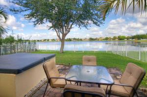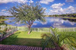 Rare find in the amenity- filled community of Liberty Isles. Situated on a very large lake where the homes across are at a distance and featuring a fountain in the middle, it's that million dollar view for under $300K. This meticulously maintained three bedroom, two and a half bath home is open and spacious. Upgrades include, stainless appliances, AC Unit, brand new laminate flooring upstairs, 18'' tile flooring, tray ceiling, extended pavered patio with spa. Room for a pool. Live the Florida life with a fitness center, lap pool, lit tennis courts and even a kiddie playground. Pull up in your convertible to your new home! Low HOA, pet friendly, good rental policy.