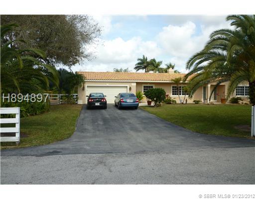 UPDATED AND REMODELED 4/3.5/2 COUNTRY HOME IN DESIRABLE QUIET, PEACEFUL NEIGHBORHOOD. FULL ACRE, CUL DE SAC LOCATION. HORSES ALLOWED, SOLID WOOD KITCHEN CABINETS, S/S APPLIANCES, SILTSTONE COUNTERS, ALL TILED IN LIVING AREAS AND SOLID WOOD IN BEDROOMS. TW O MASTER SUITES, TEXTURED CEILING AND WALLS, NEW WASHER AND DRYER (2011), WORKING FIRE PLACE, CROWN MOLDINGS, LARGE POND WITH FOUNTAIN AND SITTING/FISHING DOCK. LARGE PRIVATE YARD WITH MATURE TREES AND PALMS. COME HOME AND RELAX BY THE OVERSIZE POOL.