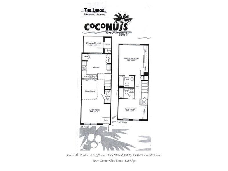 GREAT OPPORTUNITY TO OWN THIS SPACIOUS AND BRITE KEY WEST STYLE TOWNHOUSE IN COCONUTS AT WESTON, FEATURING TWO MASTER BEDROOMS WITH FULL BATHS, 1/2 BATH DOWNSTAIRS, LARGE EAT-IN KITCHEN WITH GENEROUS PANTRY, WASHER AND DRYER, 19X19 PORCELAIN TILES LIVIN G AREAS, GREAT SCREENED PORCH W/ENCLOSED STORAGE ROOM. NEW A/C(2011), WATER HEATER(2013), MAINTENANCE INCLUDES EXTERIOR INSURANCE, ROOF REPAIRS, GROUND MAINTENANCE AND AMMENITIES. ADD'L YEARLY FEE $285 MEMBERSHIP TO BONAVENTURE TOWN CTR. OK TO RENT!