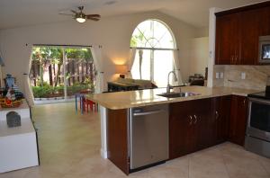 Easy Close! Beautifully updated 3 bedroom 2 bath with 2 car garage. Situated in desirable residential gated community featuring clubhouse and pool. Interior corner lot with nice yard. Kitchen has granite countertops and back splash with stainless steel appliances still under warranty. Newly installed flooring includes 20 inch porcelain tile on the diagonal in the main living area, kitchen and second bathroom. Bedrooms have dark laminate. Home has many tasteful upgrades and ample closet space. New AC 2012. New accordion hurricane shutters. Security System. This turn key home is private and convenient.