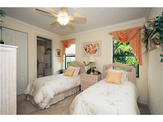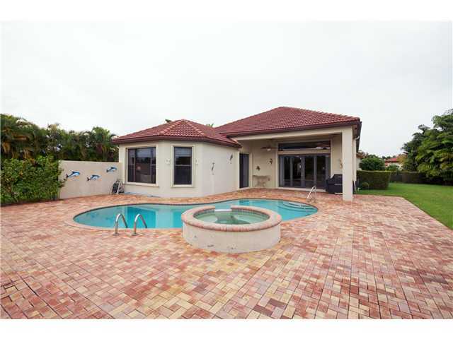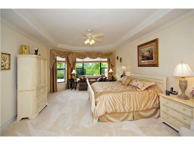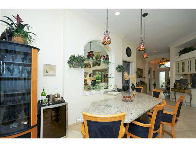 This is a must see house with every imaginable upgrade. The oversized preserve view lot has been completely re-landscaped and fenced. Master bedroom is extended to accommodate a sitting area. Volume and coffer ceilings have custom crown molding throughout. 3 bedrooms plus den, 3.5 baths plus the living room has step down wet bar with custom mirrors and shelving. French doors open to the large heated pool and spa. Custom window treatments, sun shades, blinds, ceiling fans in all rooms, plus accordion hurricane shutters are all inclusive. Beautiful landscape lighting. This house shows like it is brand new.