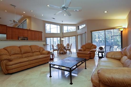 Total remodel, quality updates & upgrades thru-out, including newer roof with warranty. Gorgeous saturnia marble floors in living areas. Hi cathedral and vautled ceilings with clerestory windows. Custom fixtures and fans stay. 42" wood cabinets, grani te, tumbled marble and stainless steel in huge custom kitchen. Baths are all redone with fabulous tile, cabinets, fixtures and seamless shower doors. Large screened patio & private open pool. Quiet cul de sac street.