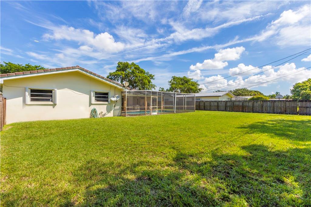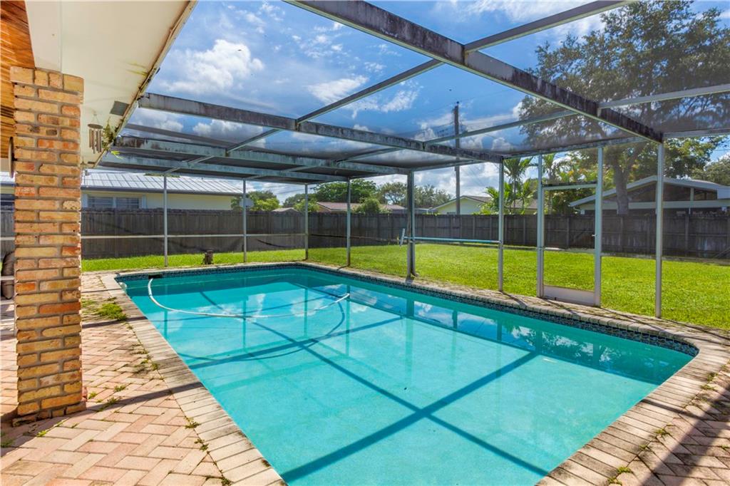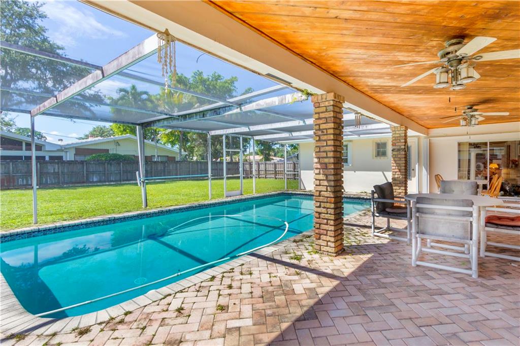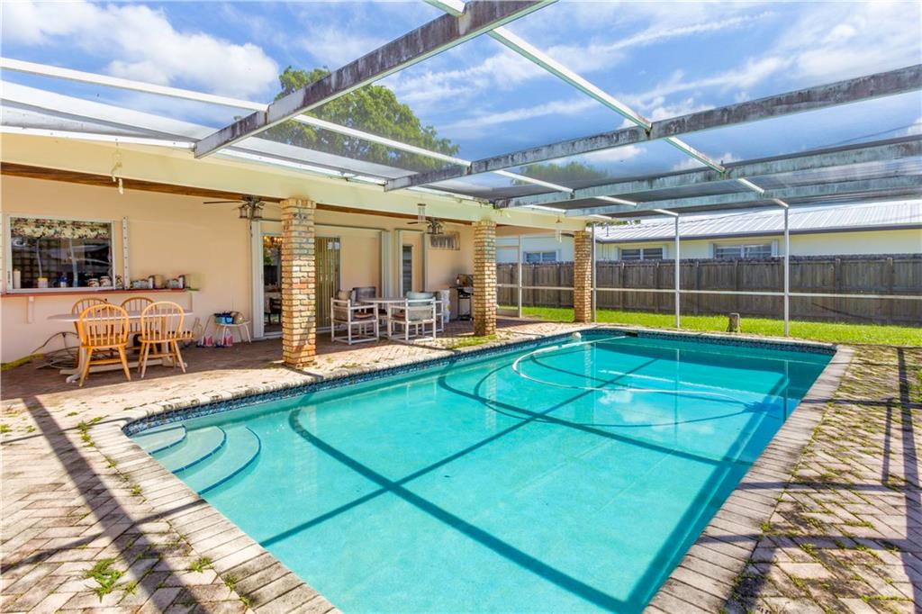 Amazing opportunity to own this spacious 4BR/2BA desirable corner lot home! Floorplan features formal living and dining rooms, eat-in kitchen overlooking screened-in pool and yard, family room with built-in bar, good-sized bedrooms, and both baths are cabana. Plenty of closet/storage space. Large fenced yard! Ready to update to new owner’s taste! Newer a/c and hurricane shutters. Schools, parks, shopping, and recreation all close by! Priced to sell!