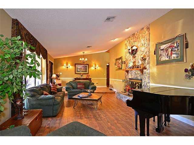 Immaculate executive home, custom gourmet kitchen, solid wood cabinets, hi end appliances, dual stone fireplace, wood floor, tile, waterfallsin tropical pool/patio,jacuzzi tub in master bath, spacious rooms, truly a family home, paved circle driveway, ho HOA, close to Sawgrass and shopping,